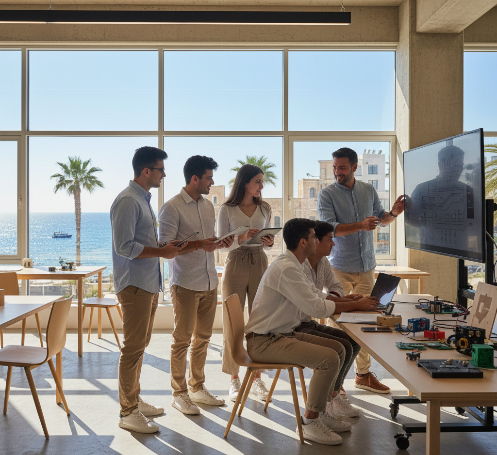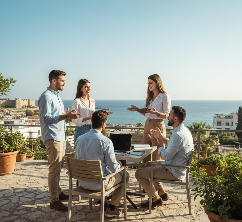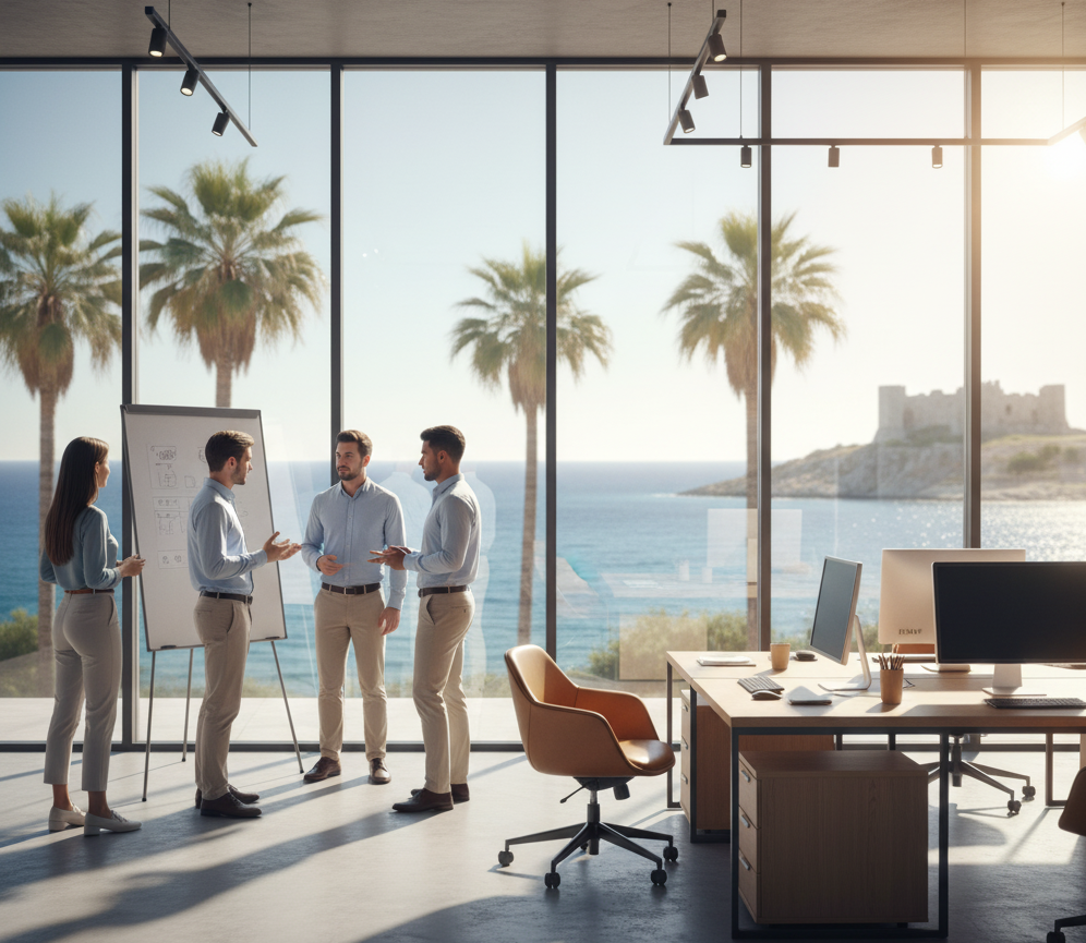 Σύγχρονο Εργασιακό Περιβάλλον με Κυπριακό Τοπίο στο Βάθος