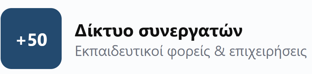 Ενθαρρύνουμε τη δημιουργικότητα και την ομαδικότητα σε ένα δυναμικό περιβάλλον. Οι συμμετέχοντες αναπτύσσουν δεξιότητες που τους καθιστούν ανταγωνιστικούς στην ευρωπαϊκή αγορά εργασίας.